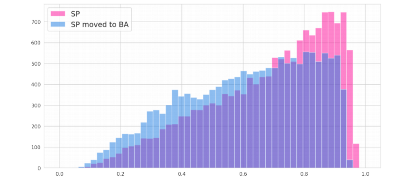 Taking this analysis further, Ramon constructed counterfactual scenarios where he moved individuals from areas of low non-white population to areas of high non-white population. He changed no other features about the individuals, but in 99.85% of cases their credit scores went down simply by moving them.